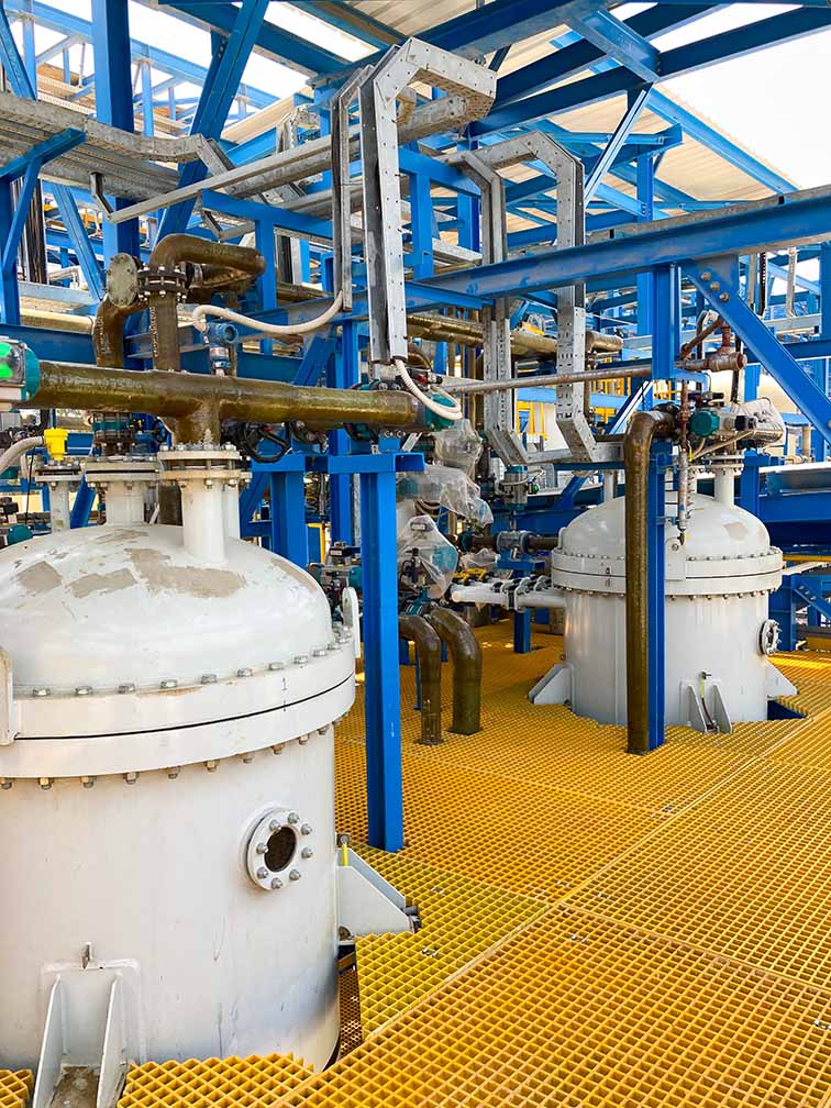 Los filtros FUNDABAC® se utilizan ampliamente en esta aplicación, proporcionando eliminación fiable de sólidos finos y alta claridad de salmuera. En este proyecto, el sistema se suministró con descarga de torta seca, permitiendo retirada eficiente de sólidos con mínimas pérdidas de salmuera y menor intervención manual.