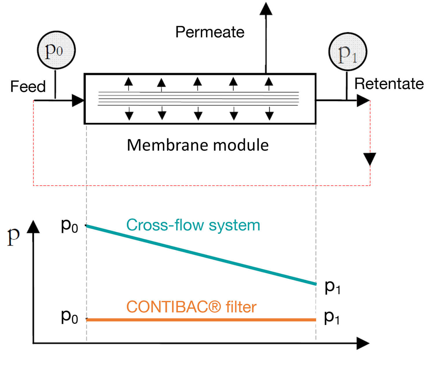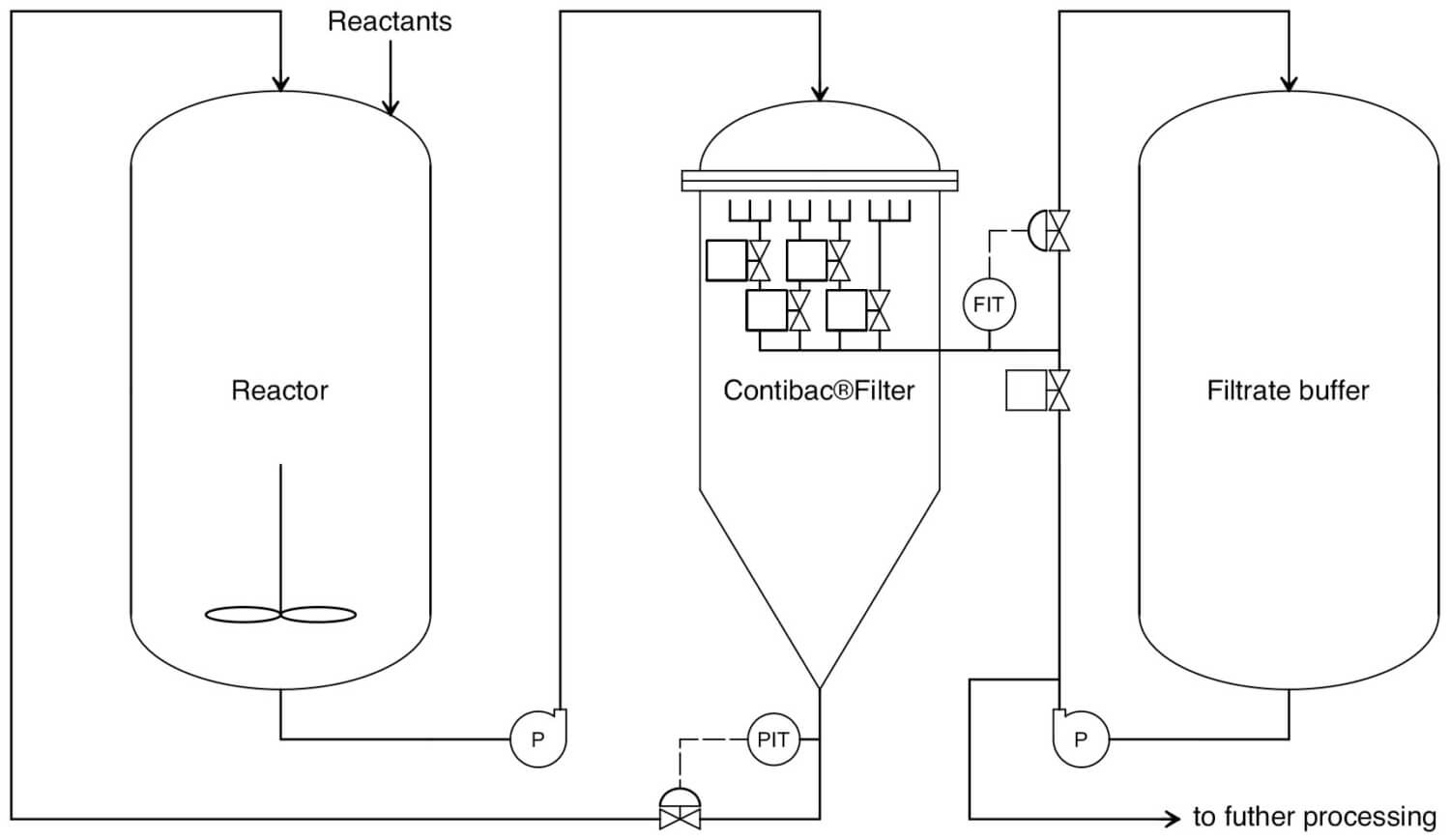 As an alternative to the above, a continuously operating CONTIBAC® can offer a number of advantages. Its basic filter operation resembles a cross-flow filter system, with the main feed entering at the top and the retentate exiting at the bottom, the gravitational force is effectively used in addition to the downwards flow to continuously remove the catalyst from the filtering membrane.